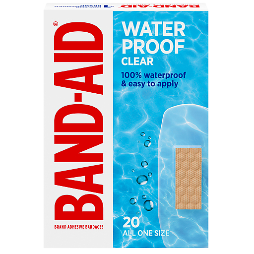 Help care for minor wounds, cuts & scrapes with BAND-AID Brand Waterproof Clear Adhesive Bandages. Our most advanced waterproof bandages stay on through handwashing, showers & swimming. These comfortable bandages have a four-sided adhesive that make it easy to apply and stays on to help block out water, dirt, & germs that may cause infection. The waterproof bandages feature a unique Quilt-Aid Pad that is designed to cushion & help protect painful wounds, helping you heal & prevent reinjury. Their non-stick pad ensures that they stick to the skin & not the wound. To use, apply the sterile adhesive bandage to clean, dry skin for minor wound care & change daily or as needed. For proper care, treat the wound with an antibiotic ointment such as Neosporin prior to application. Care for your minor wound with BAND-AID Brand Adhesive Bandages, the #1 doctor recommended bandage brand. This pack of clear bandages is the ideal addition to wound care supplies & first aid kits.