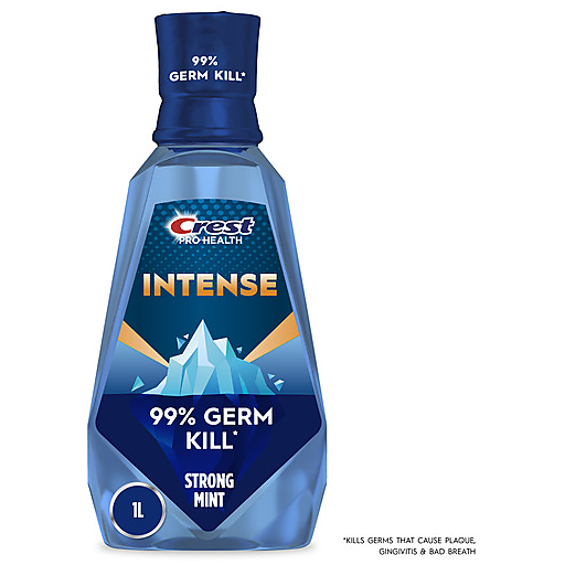 Advance to a healthier mouth with Crest Pro-Health Intense Mouthwash, the rinse that starts fighting plaque from day one*, and working on early gum disease by reducing gum inflammation and bleeding gums. The mint flavor fights bad breath for a refreshing and rejuvenating sensation.
