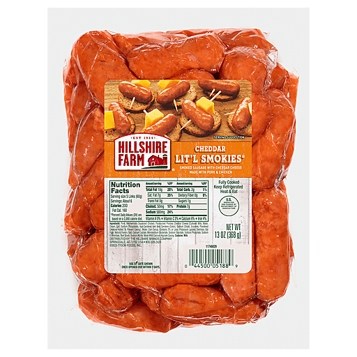 Whether you’re crafting an appetizer for a party or looking for a savory bite to eat, Hillshire Farm Lit’l Smokies Smoked Sausages are the perfect snack. Perfectly seasoned and smoked to perfection, these delicious sausages are fully cooked, ready in minutes and bursting with flavor. For a fun, crowd pleasing snack the whole family can enjoy, serve these delicious sausages with your favorite dipping sauce or wrap in a puff pastry and bake. Includes one 13 oz package of Hillshire Farm Cheddar Lit'l Smokies Smoked Sausage. Hard work. Dedication. Integrity. These are the values we live by—and the ingredients we put into every package of Hillshire Farm Smoked Sausages. Since 1934, the Hillshire Farm Brand has stood for the honest, carefully crafted meats your family loves, made with the ingredients they deserve. And we’re confident you’ll taste our commitment to quality in every bite.