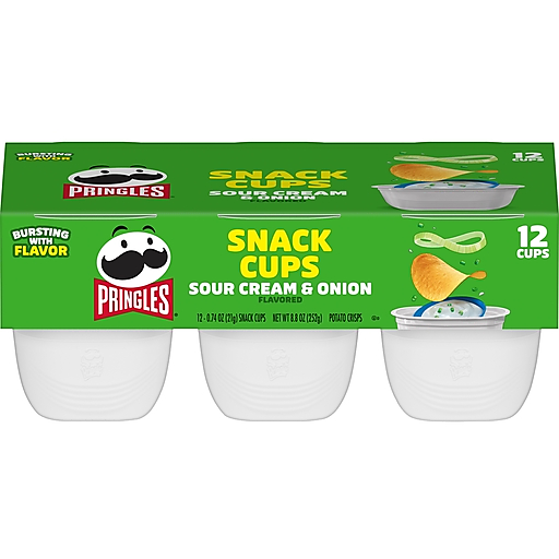 What comes next after opening a Pringles Sour Cream and Onion Snack Stacks cup? The crisp, crunchy, hit-the-spot taste of potato seasoned with zesty sour cream and onion. Ingeniously shaped Pringles Sour Cream and Onion potato crisps are insanely light, crispy, and never greasy. These crisps chips are perfectly salty and bursting with savory flavor. With these convenient, portable cups, it’s easy to create your own snacking moments wherever and whenever; Grab one as a pick-me-up for after school or pack as the ultimate car snack for road trips. Bring these snacks to game time and pack a few for other Pringles fans. Stash this snack in your work desk or pantry to enjoy anytime. Share Pringles at your next cookout or BBQ to turn up the flavor and fun among family and friends. Get your hands on Pringles Sour Cream and Onion potato crisps for an irresistible taste experience that keeps you coming back, stack after stack.